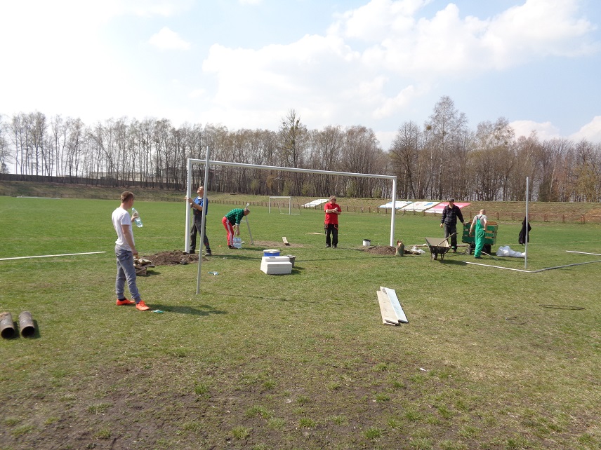 Pracownicy spółki Wojkowickie Wody wykonali prace montażowe dotyczące nowych bramek na boisku Górnika Wojkowice.